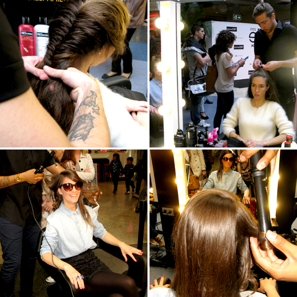 Solo llegar al evento, los estilistas de TRESemmé nos hicieron unos peinados preciosos. Desde aquí queremos agradecerle a Antoine Simonette y al resto de estilistas de TRESemmé los peinados tan bonitos que nos hicieron. Os dejamos una foto nuestra con los estilistas y el embajador de TRESemmé y algunas fotos de los peinados que nos hicieron. (Las trenzas son un must-have de esta temporada SS 13).