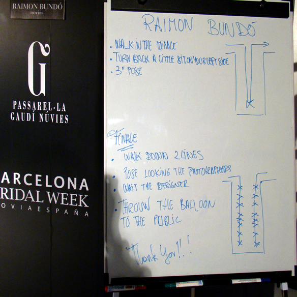 La «colgada» Marta R. tuvo la suerte de colarse cuando todavía estaban ultimando todos los detalles, y pudo fotografiarse con Ivonne Ruiz, una de las diseñadoras de la firma; así como también fotografió la pizarra con las instrucciones para las modelos.