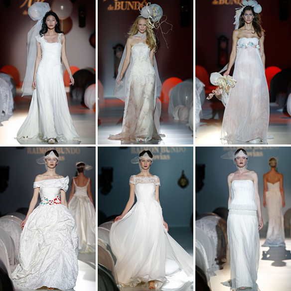 La firma nupcial Raimon Bundó presenta en su desfile dos colecciones diferentes, por un lado la colección más clásica «Tiempo Infinito» de su línea «Raimon Bundó», y por el otro, la más juvenil y desenfadada «Alegría» bajo su línea «Ir de Bundó».