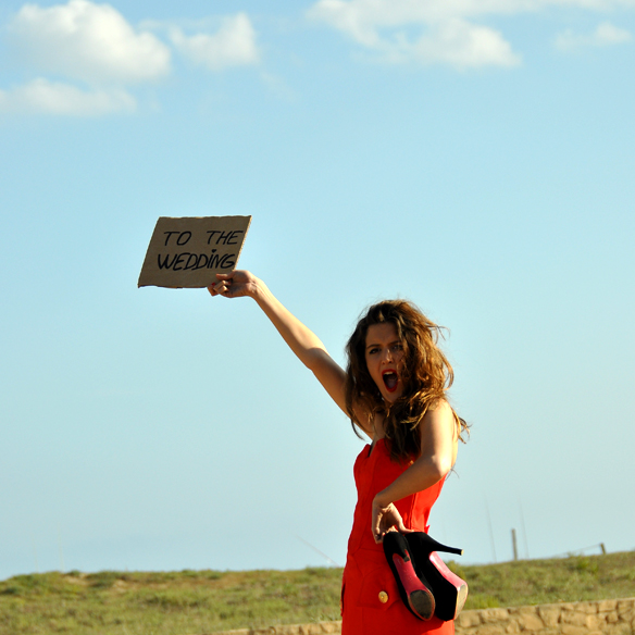 Y después de esperar esa grúa que no llega… optaría por cartel en mano para hacer auto-stop, calzarme mis converse (pensadas para después de largas horas del baile cuando ya te duelen los pies), y echar a andar. ¡No puedes faltar a la boda, después de tanto esperar, debes pasarlo genial!