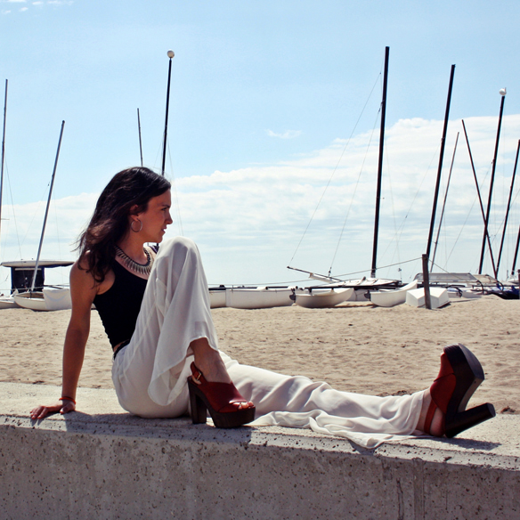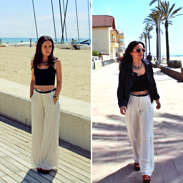 We all like to get ready and feel beautiful. And when we have the chance, we always think if we will be able to wear that dress, those pants or that jacket in other occasions, and if we can take advantage of them more days. Well, I propose an elegant look for an informal day wedding, that also can be worn in other occasions and is not limited to etiquette events. So I have chosen ivory pants, which can match with any kind of top garment. Besides, the black top adds a special summer-like touch, which combined with the black jacket brings a casual look but also carefully thought. And, as I am a shoe lover, these ones on tile color are perfect to accompany a funny happy day.