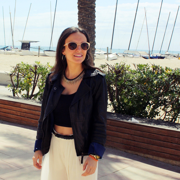 A totes ens agrada arreglar-nos i sentir-nos guapes. I quan en tenim la ocasió, sempre pensem si aquell vestit, aquells pantalons o aquella jaqueta ens la podrem posar en altres ocasions, si la podrem aprofitar altres dies. Doncs bé, jo us proposo un look elegant per a un casament informal de dia, que a la vegada pot donar joc en altres ocasions i no queda limitat als esdeveniments d’etiqueta. Per això he escollit uns pantalons de color blanc trencat que poden combinar amb qualsevol cos. A part, el top negre dóna un toc especial d’estiu, que amb la jaqueta negra aconsegueix un look desenfadat però a la vegada cuidat. I, com que sóc una enamorada de les sabates, aquestes color teula són perfectes per acompanyar un dia de diversió i felicitat.