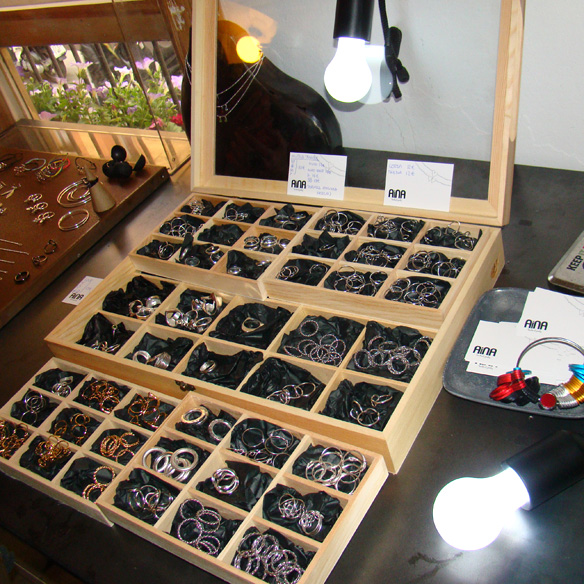 Once arrived, and after meeting the organizer Pia Capdevila, we talked with the different brand representatives that were there and knowing all their products and staff. Between all the brands there was Ribot Barcelona with its famous wood glasses, Aina Joies with its hand made rings and necklaces, Twenty Violets with its trendy bags, Miss Medallas with its customizable bracelets and necklaces, and Pampaflower with clothes and other things made with Argentinean leather.