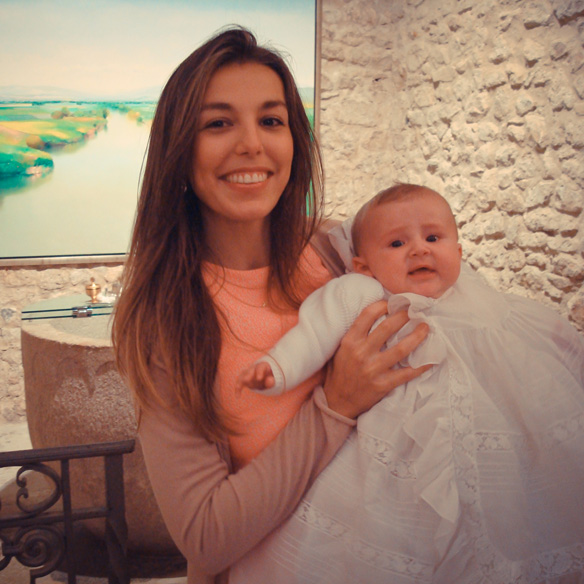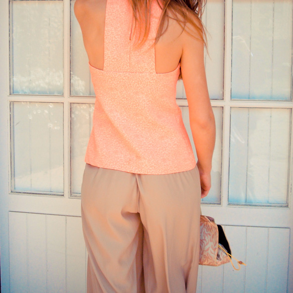 Saturday, June 1st: a beautiful day and lots of sun in the Empordà. I chose this look for a very special baptism. The costume is a 2 pieces: the body of pique in pastel salmon color and sheer beige devided skirt. The pants plays a big part because it is easy to wear and very comfortable for the occasion. The look matches well with seasonal colors and is bright next to the sun and the sea of the Alt Empordà.