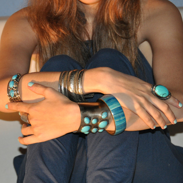 Pulseras/Bracelets: The big silver one with blue stones from a streetmarket, the small silver one with blue stones from H&M SS 13, the silver one and the blue one from streetmarket also