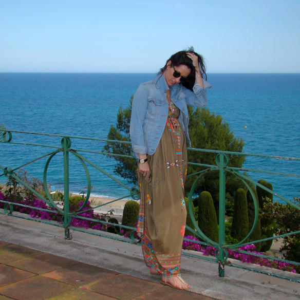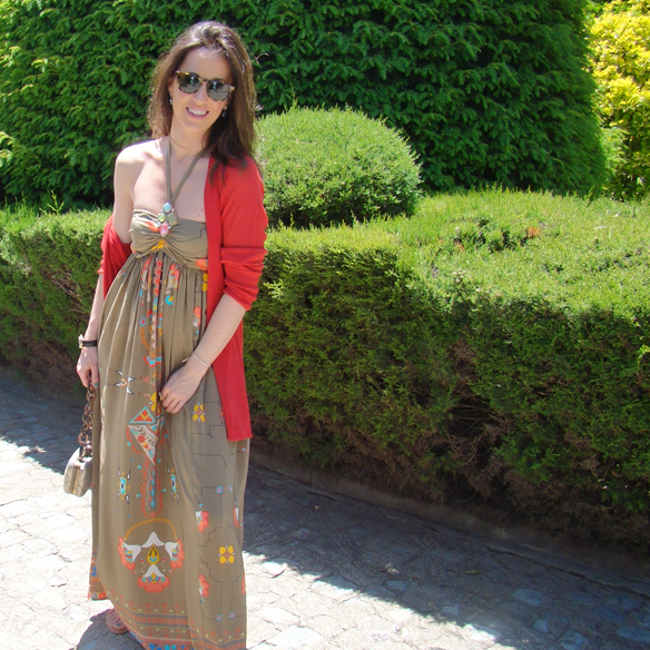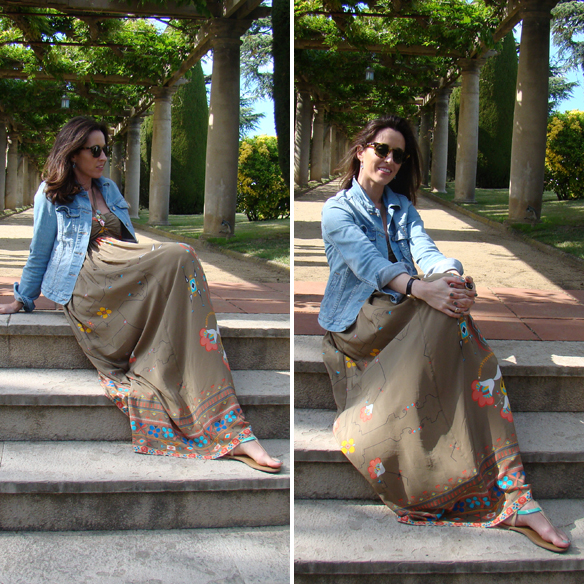 I never thought I would say this but… it is not necessary to wear heels to be the most stylish. Flat sandals are, apart of comfortable, a very good option to match with a day or night summer look. Because of that, and due to my friend German 35th birthday celebration, I wore the look that I now show you for the barbecue he organized at his house. As you will appreciate, I was wearing a silk long dress with flat sandals and a clutch I have since a long time ago. I gave some color to my look with hand and feet nails in mint (the dress code party required to wear something green), and a red jacket that for San John’s Eve I will substitute by a denim jacket.