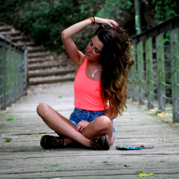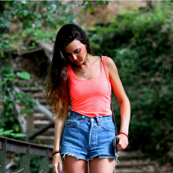 Not even one week stays for Saint John and we are already breathing a festive environment to commemorate this celebration! This look that today I propose is the one I would wear during a precious night of Saint John celebrated in the beach. Now that summer is beginnig, showy colors remain better that never and that’s why I have chosen a fitted neon coral color body, combined with Levi’s shorts and nautical shoes to walk comfortably along the beach and the port of the coast. Many of you will think nautical shoes are an inconvinient enough and slightly suitable footwear to wear on the beach during the night but the truth is that I prefer a few closed and resistant shoes than pretty sandals for one reason: to avoid possible accidents with the fire of Saint John’s Eve. In spite of urban legends, nautical shoes are not an unconfortable footwear.