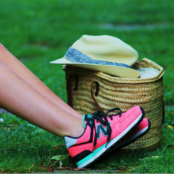 ¿Why not a sport casual look? The outfit that I present today is based on a comfortably, simply and easily dress without forgetting the striking touch that today I represent with these pink and green fluorescent New Balance. You may think these trainers are designed as running sneakers but the truth is this particular model is dedicated to show them off through the city during day and night. I have combined it with a little black dress (LBD) and a beach hat that we use in the city too. The black necklace gives to the outfit a seriousness touch but without losing the simplicity and informality I was looking for.