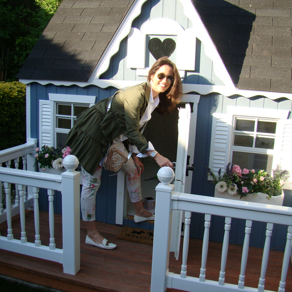 Gracias a que los diseñadores de moda más prestigiosos casi nunca descartan el floral print en sus colecciones, verano tras verano las flores forman parte de muchos looks veraniegos. Prueba de ello es mi outfit compuesto por unos floral pants de la temporada pasada y que combino con una clásica camisa blanca oversize, unos icónicos mocasines gommino de Tod’s y un abrigo de verano con ondas en la parte inferior que me encanta. Como veréis ahora, es un look muy cómodo e ideal para pasar la tarde jugando con mis hijos en la fantástica casita que comparten con sus primos. Así, mientras en el interior de la casita mi hijo Mauro jugaba con sus primas, mi hija Fiona y yo posábamos en el exterior para la cámara :)
