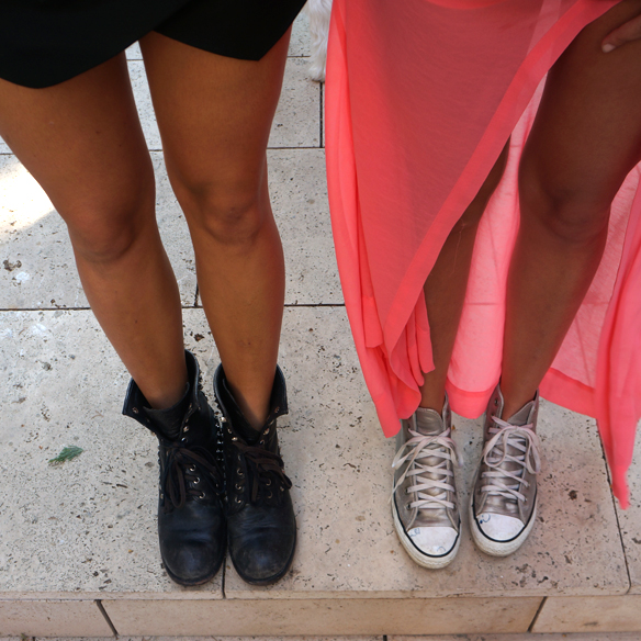 El post de hoy es un post diferente a los demás, ya que hoy sale Julieta, la hermana de Carlota, porque Ana no ha podido esta vez. Las hermanas Gracia hemos escogido un look veraniego. Julieta ha optado por unos shorts-falda que se pueden llevar tanto de día como de noche, combinándolos con una camiseta tie-dye. De zapatos ha escogido unas botas con pinchos para romper con el look. Carlota en cambio ha escogido una maxi falda con aberturas en los lados con un top marinero y unas bambas para darle un toque más de calle.