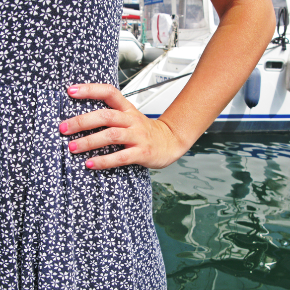 “Cuanto menos, más”. I així, amb un outfit molt senzill m’he decidit per un vestit de color blau marí amb un estampat de flors molt petites que el fa més divertit. L’he combinat amb unes sandàlies negres i daurades i un bolso a l’estil cofre de color marró teula, molt pràctic i perfecte per portar-hi les quatre coses importants. M’agrada la senzillesa del look i la gran quantitat de possibilitats que té!! I ara sí, a gaudir de les vacances!!