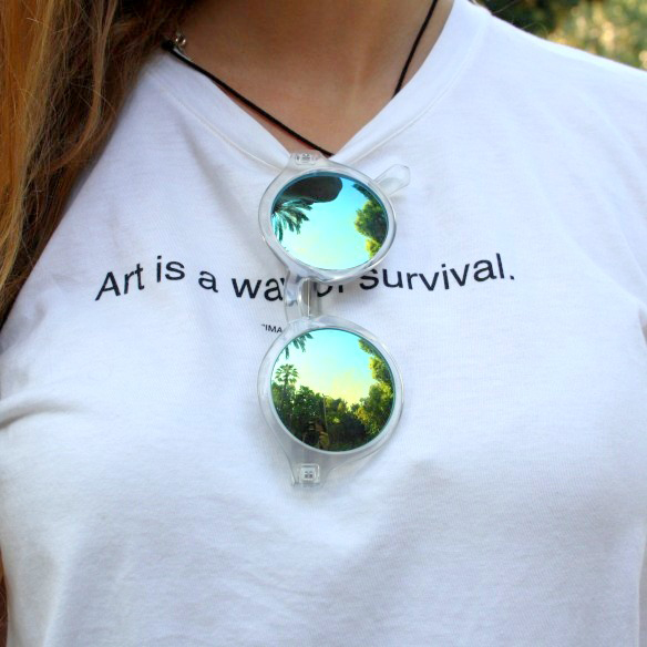 Avís. En el post d’avui no hi ha reflexió, no hi ha consellets, no hi ha trucs especials, únics o destacables per sobre dels altres. No hi ha revolució. És simplement una idea pràctica i fàcil per els dies més llargs. La calor apreta. Les ganes de platja també, així que ha arribat l’hora d’emplenar la maleta de bikinis i ulleres de sol i posar rumb a la costa. Guarda’t els vestits bonics i els complements estrella per lluir-los els dies de relax i per el viatge, treu suc als bàsics. Combinar denim amb blanc és anar sobre segur, l’opció fàcil i còmoda. Afegeix unes ulleres atrevides per donar vida al look i carrega bé les piles per disfrutar al màxim l’estiu.