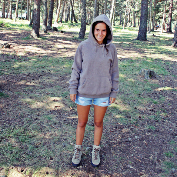 From La Cerdanya I propose the last summer look, different from all I have proposed until now: a mountain look, where I have spent the major part of my holiday. Denim shorts, a quite fresh and comfortable t-shirt, and clearly, good hiking boots. Apart from that, when evening is coming and it’s getting colder, a thick sweater and a warm jacket are what you need.