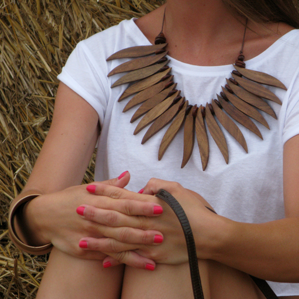 Mi mención especial de hoy va para el collar de madera de Papiroga. Me encanta esta marca de complementos, sobre todo sus collares. Voy entrando de vez en cuando en su web y a veces me doy el capricho. Aviso, no son baratos… pero son auténticos. (Ya os enseñé otro collar suyo en mi post De boda en boda).
