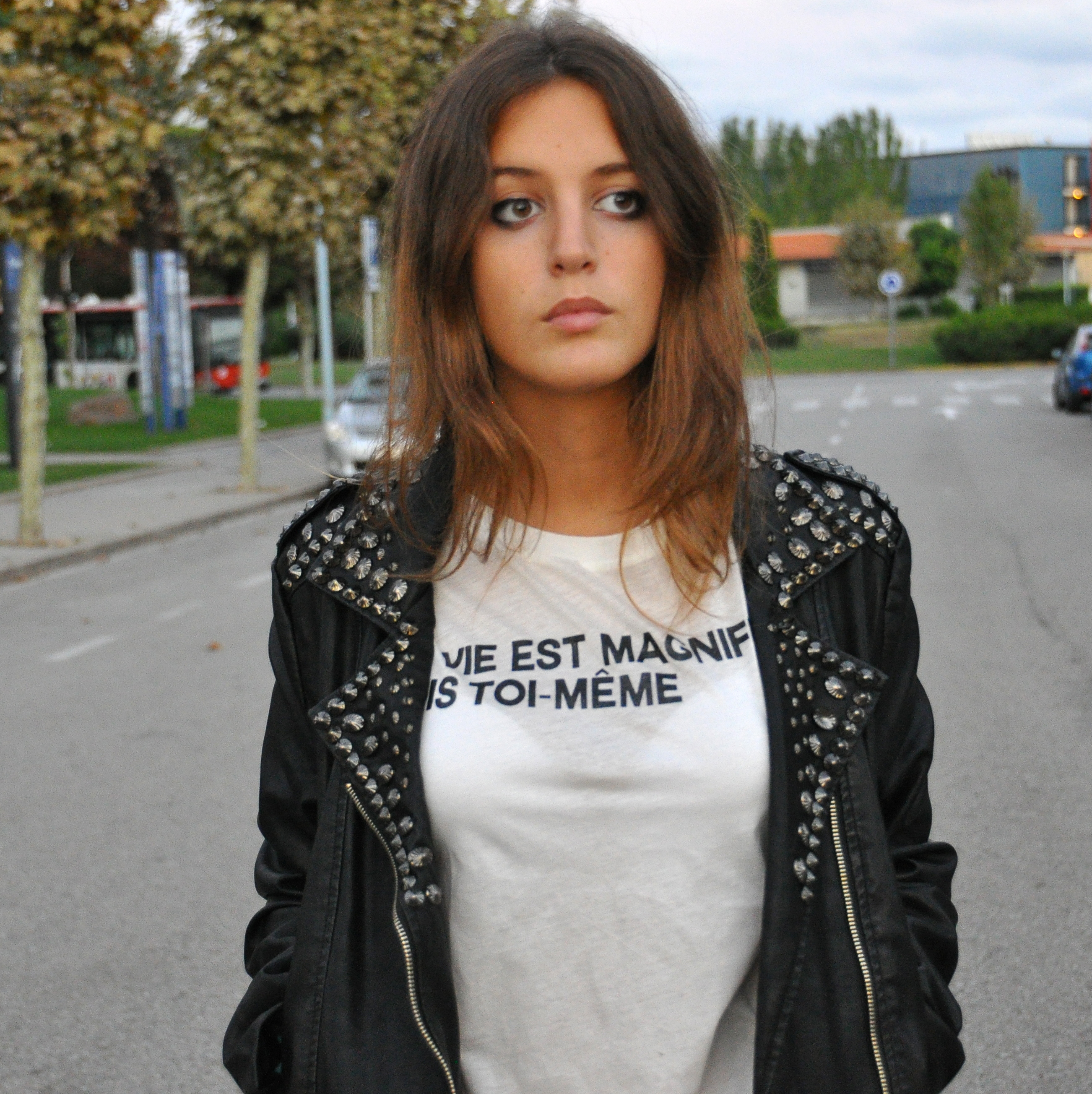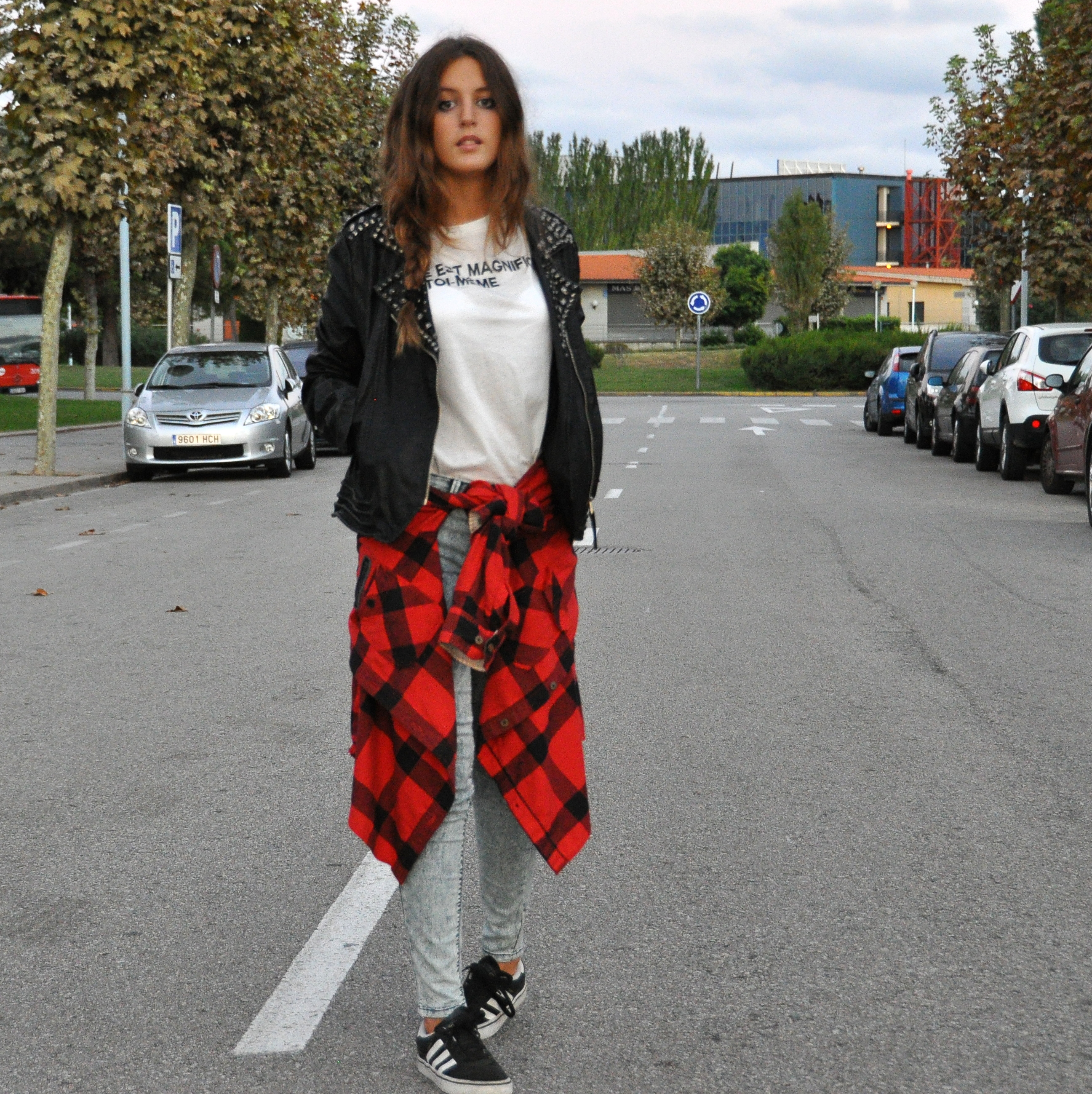 Aquesta temporada el grunge ve fort amb looks desenfadats i informals. Els meus bàsics de cada hivern són camises i jerseis XL, jeans… Estic de sort! La camisa d’avui és la meva preferida de totes les que tinc, els quadres són must-have sens dubte, uns jeans pitillos còmodes, les clàssiques Adidas i caçadora pels dies d’hivern més calorosos, amb els detalls de tatxes que m’encanten. Però de tot el look em quedo amb el missatge que transmet la samarreta: «La vie est magfinique sois toi-même» (La vida és magnífica sigues tu mateix). Les peces de roba amb missatge són una altre tendència de FW 13/14, que dóna rotllo i personalitat als outfits, és una altre forma de transmetre.