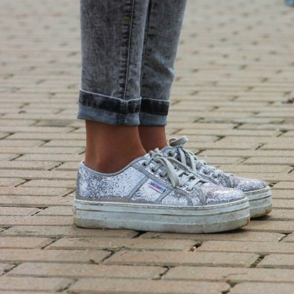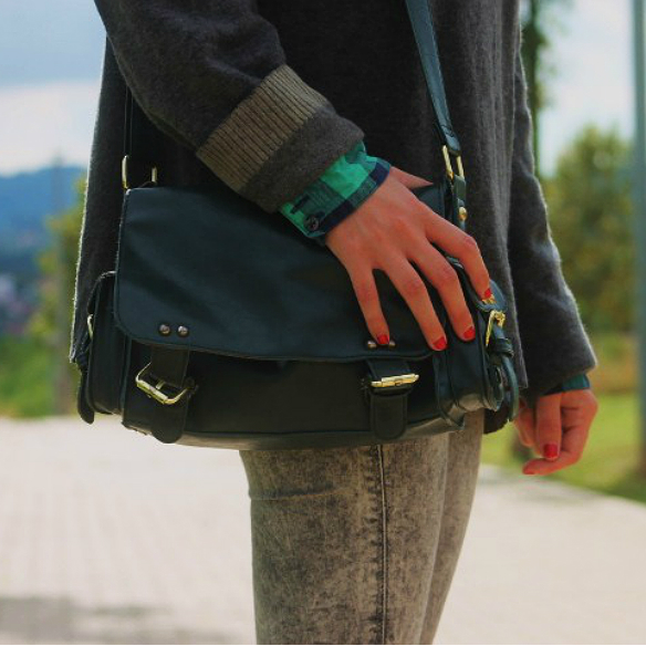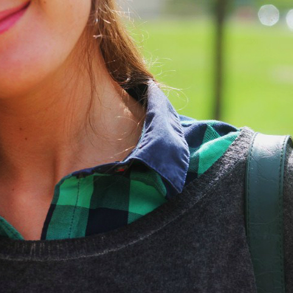 Fortunately or unfortunately we’re in Autumn. A season which isn’t the favorite one for many of us but this year comes with grey shades, a clear must-have for this time. I wanted to combine some worn grey pants with a wool dark sweater, great for chilly days, but as the warmth hasn’t let us yet I took silver glitter Victoria’s shoes that blends perfectly well with dark shades and completes today’s look. Plaid shirts are now very popular so I opted for a green and blue one which gives a touch of color to the outfit!
