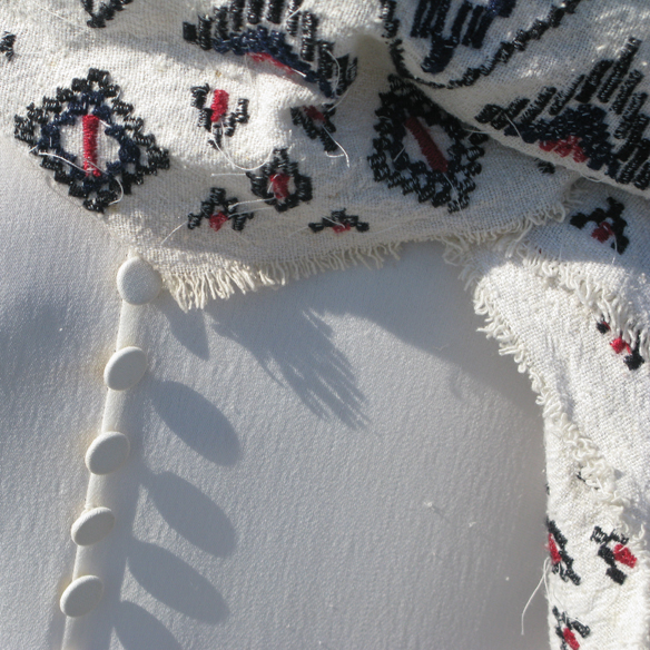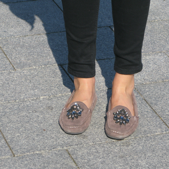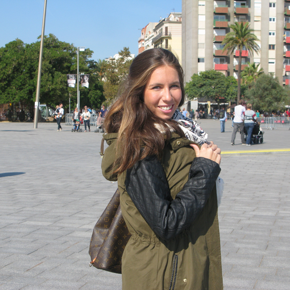 I wore this look on Sunday to enjoy a meal with my friends in the Barceloneta. I wanted to be comfortable so I decided to put on my basic black pants, a white shirt, a pair of moccasins and, since the last few days the weather has cooled down, I wore my new military parka with inner lining which makes it very warm. From today’s look, I would highlight the detail of the buttons on the shirt, the dazzling gems of the moccasins, the ethnic scarf and the different textures of the parka.