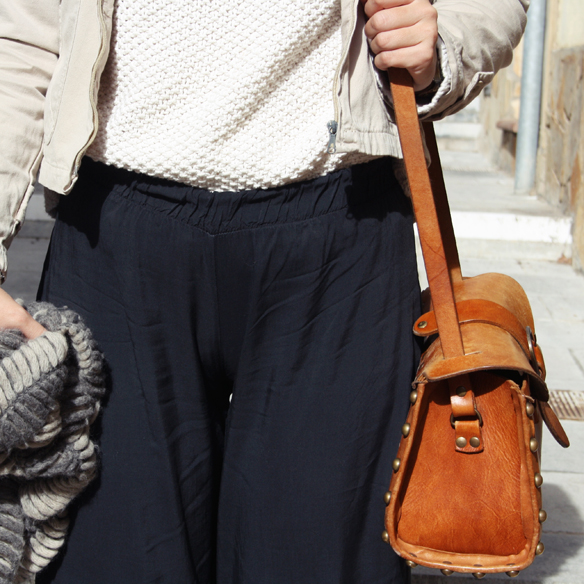As the cold isn’t yet here, I have decided on some palazzo pants (thanks to the courtesy of Double Agent) that I find funny and daring. I thought it would be difficult to wear them but I was eager, and along with a knitted sweater and a light-colored short jacket, I have finally dared to wear them. The truth is they are very comfortable, so all of you that are willing to try them and didn’t do yet, I recommend them! Try it, I am sure you will like them!