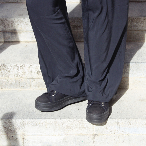Como el frío no llega todavía, me he decidido por unos pantalones palazzo (gracias a la cortesía de Double Agent) que me parecen divertidos y atrevidos. Pensaba que me costaría ponérmelos pero ya tenía muchas ganas, y junto con un jersey de punto y una chaqueta corta de color claro, me he atrevido a ponérmelos. La verdad es que son muy cómodos, así que a todas aquellas que les haga gracia probarlos y no os atrevéis del todo, ¡os los recomiendo! ¡Probadlos, seguro que os gustarán!
