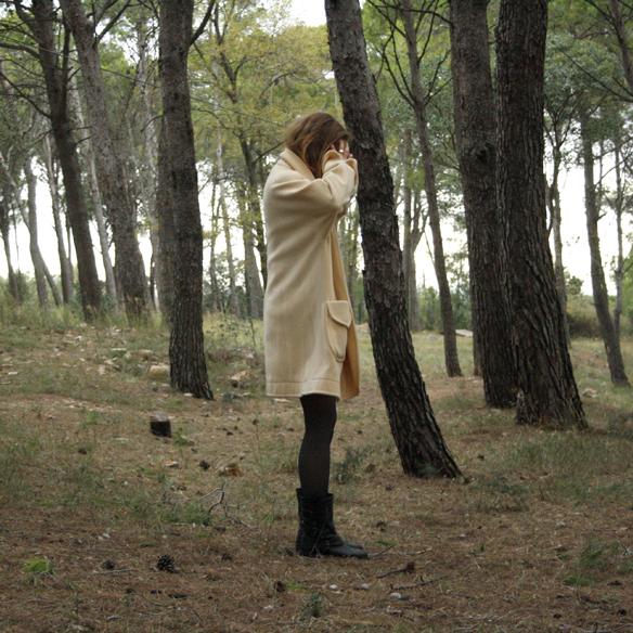 Mediados de noviembre y parece que finalmente el frío ha decidido despertarse, con el calor que hacía y yo deseando envolverme entre cosas suaves y desproporcionadas. Así que hoy que no apetece mucho salir a poner a prueba nuestras capacidades de supervivencia, una se pone a revolver la casa hasta que se encuentra con sorpresas como éste dulcísimo abrigo que mi madre guardaba en secreto al fondo de su armario. Tan oversize que podría vivir dentro, y de hecho, creo que no podré separarme de él en todo el invierno. Así que ya sabéis, calcetines gruesos, colores pastel, inspiración invernal y la lluvia al caer.