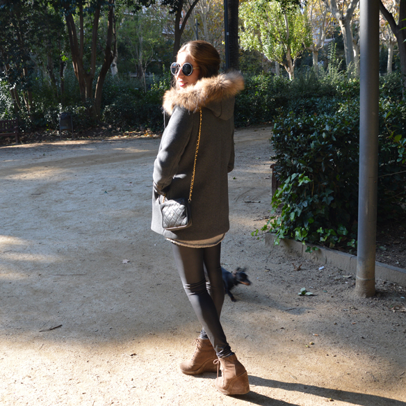 La he combinado con unos leggings de polipiel de Calzedonia, con un jersey gris súper calentito de Zara y unos botines de cuña de Topshop. ¿Qué os parece el look? ¿Os gusta?