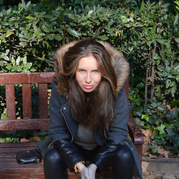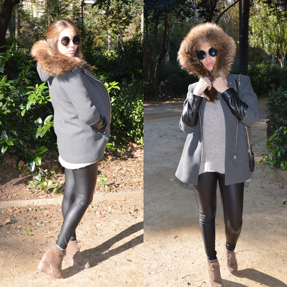 I have combined it with leatherette leggings from Calzedonia, with a super warm grey Zara sweater and wedge booties from Topshop. What do you think about today’s outfit? Do you like it?