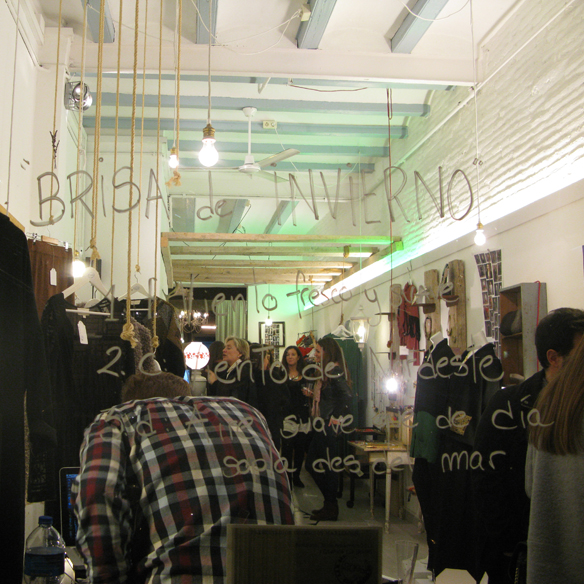 On Wednesday November 20th we were invited to the presentation «Brisa de invierno» collection by Maria Roch, a young designer who succeeds where she goes. We met her before at The Changing Room (here) and we wanted to know about her FW 13/14 collection. The ROOM store in C/Laforja 112 became the place to be: champaign, cupcakes, popcorn, DJ, familiar faces and clothes, lots of clothes.