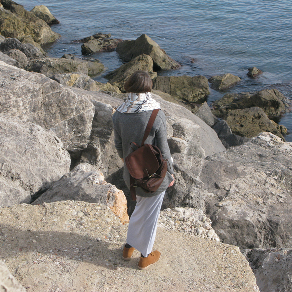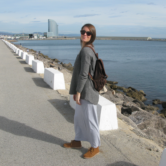 I love backpacks. And this one, courtesy of Georgina Carreras, more. I think backpacks are forgotten and it shouldn’t be like this. They are comfortable, genuine and give a hippie touch to the outfit. I will not give up the long dresses in Winter, and I like the mix of grey with brown. The final touch, this scarf with Winter print that I bought years ago and I still like as the first day.