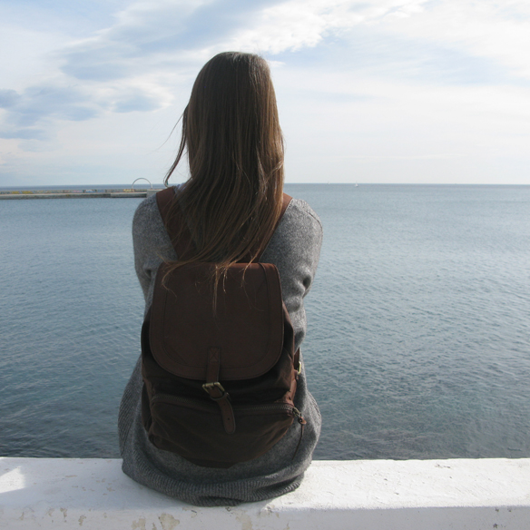 Me encantan las mochilitas. Y esta, cortesía de Georgina Carreras, más. Me parece que las backpacks son las grandes olvidadas y no debería ser así. Son cómodas, auténticas y le dan un toque hippie al outfit. No pienso renunciar a los vestidos largos en invierno, y me gusta la mezcla del color gris con el marrón. El toque final, esta bufanda con print invernal que me compré hace años y me sigue gustando como el primer día.