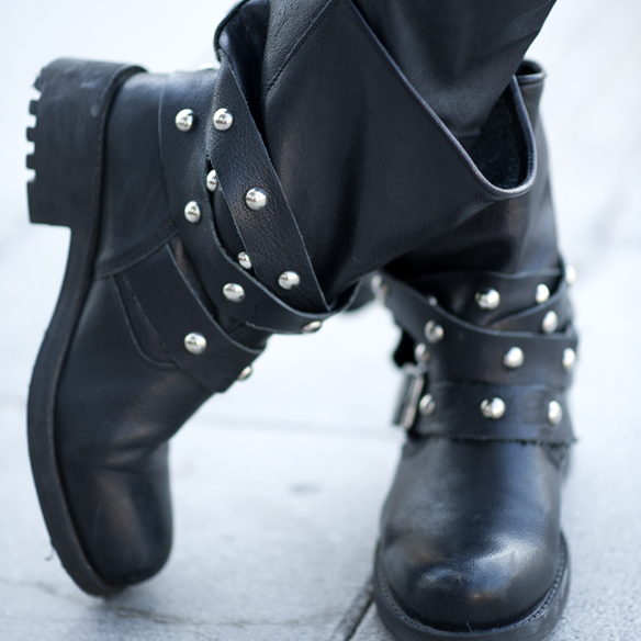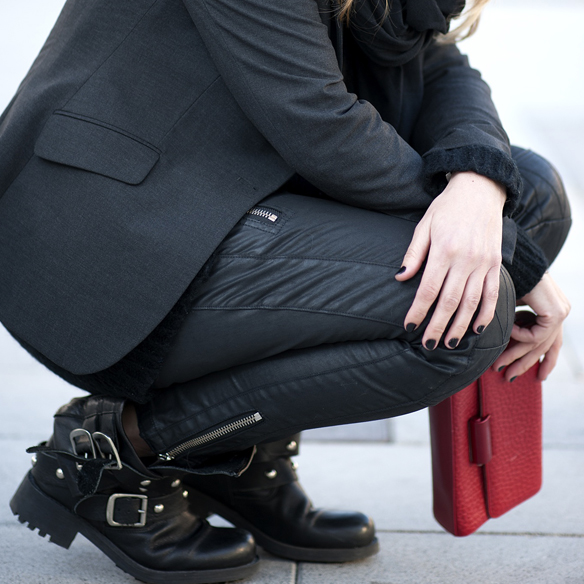 For this post I thought of a casual and chic black total look, I fell in love at first sight with this extreme pamela… Has it ever happened to you, walking through a shop window and it talks to you… haha!!! It really happened to me with this pamela, and here it is, it is part of my closet… And what better to combine it with this Isabel Marant pants that for sure are going to be my must this Winter, a wool maxi jumper, and of course, a blazer that is always perfect wear what you wear. And to take seriousness to the look, I combined it with these rock flat boots, which besides being very comfortable, have this lout touch I like so much… I think the outfit is ideal, and that you can wear it to an event as well as to run behind your kids (which is what some of us usually do, or am I wrong…?) I hope you like it!!! Happy weekend!!! Enjoy it!!! Kisses
