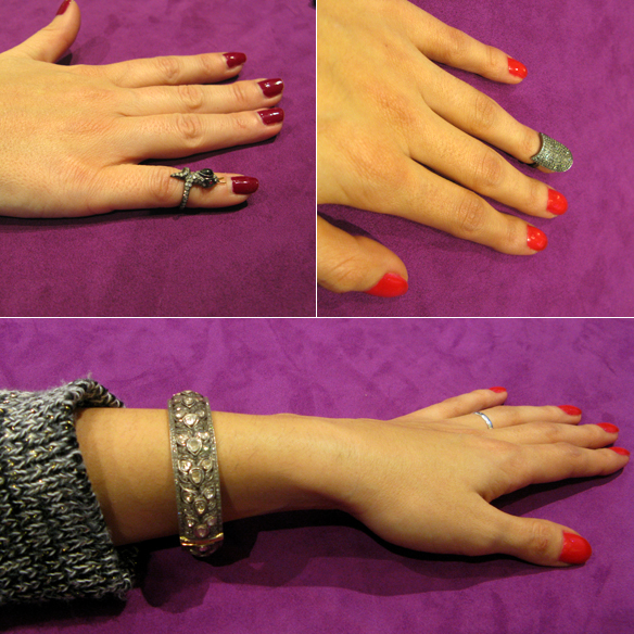 Como BLU Barcelona intenta estar cerca de aquellas clientas más trendies, las «colgadas» os contamos 4 piezas que nos parecieron lo más. En primer lugar esta pulsera esclava atípica porque no incluye al dedo pulgar (1.954€). La tienen en esta forma más vintage, en forma de serpiente, y nos parece muy elegante y distinta. Nos llamaron la atención dos anillos diferentes: uno que queda a la altura de medio dedo, y uno que es como un escudo de la uña. Y por último este brazalete vintage de diamantes que nos parece auténtico. Sabemos que las más trendsetters pronto empezaréis a lucir algunas de estas piezas…