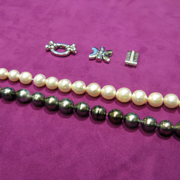 Y finalmente queremos contar algunas curiosidades del mundo de las perlas. Las perlas llegan en tiras largas donde van asociadas aquellas parecidas de tamaño; las blancas suelen ser australianas y las grises de Tahití. Cuando se realiza un collar de perlas, es importante tener en cuenta dos factores. Por un lado, escoger un cierre de collar adecuado, y por otro, tener en cuenta que las perlas deben llevar un nudo entre perla y perla. Es una técnica manual de anudar mediante aguja y con 3 vueltas. Este nudo evita que las perlas rocen entre sí y se desgasten, y asegura que sí se rompe el collar, solamente se daña una perla y no todas.