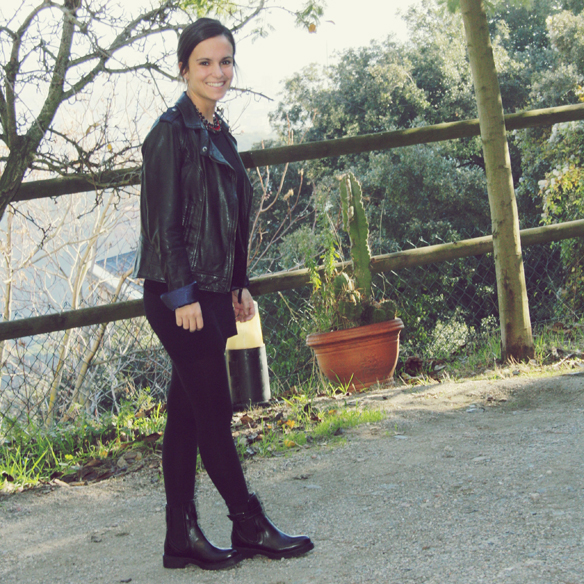 Less is more. And yes, black is always the safest option. I like black. I think it is smart. So, for Christmas, I have chosen a LBD (little black dress), with black fur booties that give a touch of rock and a leather jacket. I think it’s a good way to go stylish, youthful and comfortable. I’m not much in favor of high-heeled shoes, only for very special days, but at Christmas I like to go comfy to enjoy the day. Also, I have decided on this necklace that adds a touch of color to the outfit.