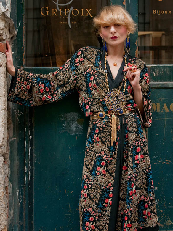 «The style of…» today is for a diva of another era: Catherine Baba. An Australian madame who strolls the streets of Paris in an eccentric way, pedaling a bike with high heels, huge sunglasses, vintage coats and accessory excessiveness, if possible, on her head. Her fashion tip is: «Accessorize aggressively. You know, j’adore accessories. J’adore». She defines herself as «I’m a slave to accessories. Belts are my oxygen», and recommends that when you don’t know what to wear «Turban & GO!».