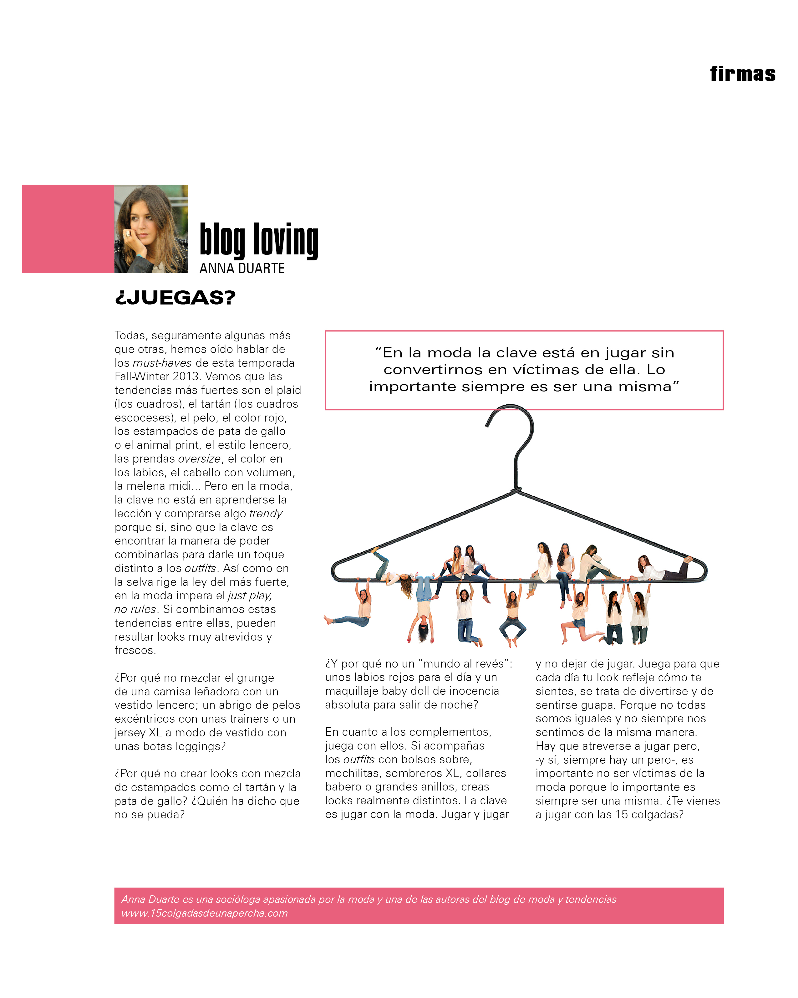 Surprise! The number of Jan/Feb personal image C&C MAGAZINE and… On page 127 our first article in off-line press! Signed by hanging Anna Duarte with the title «Do you play?» we give you the keys to play with fashion without becoming a victim of it. Want to read it?