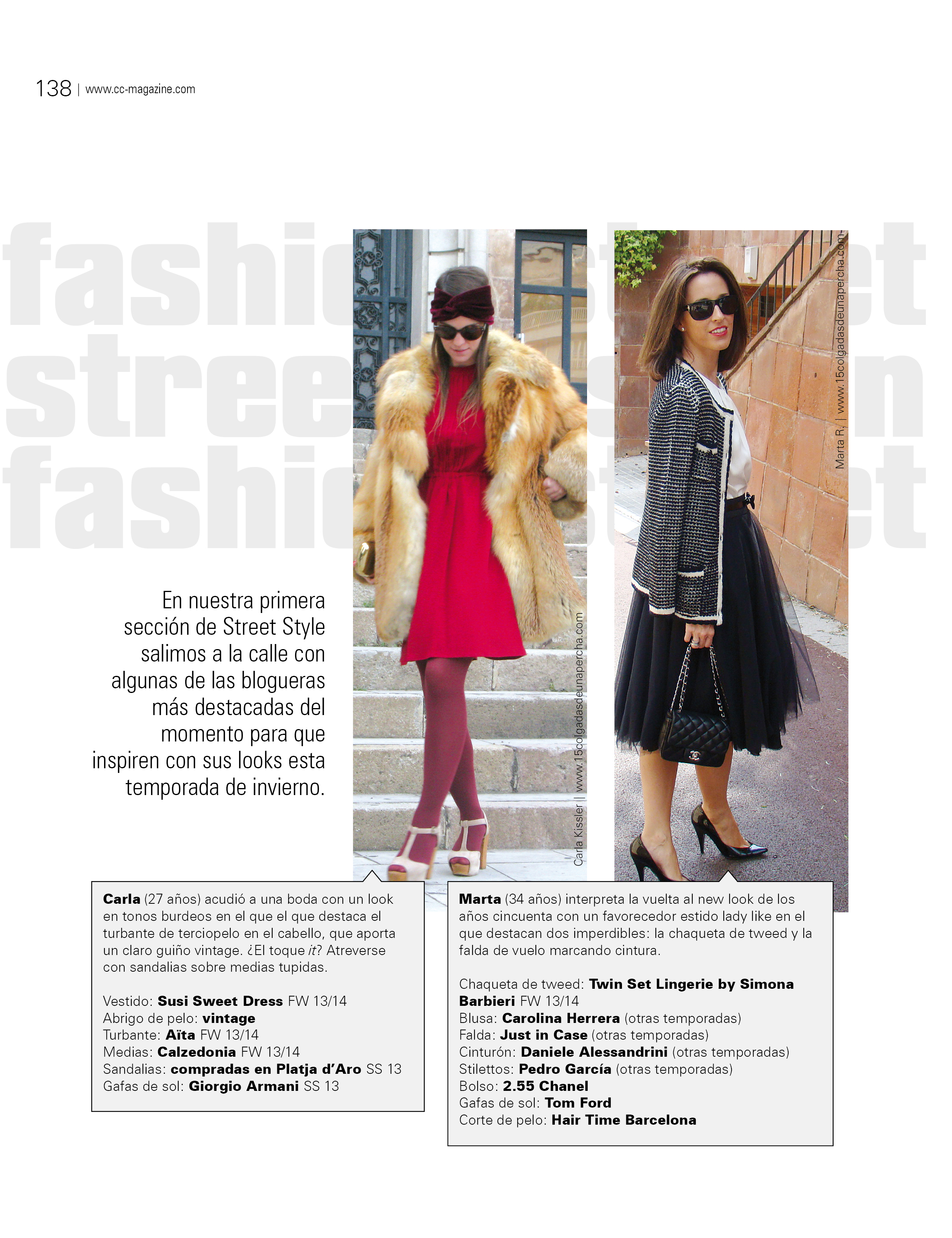 Y seguir ojeando la revista y darte cuenta que las colgadas Marta R., Ana Crank, Anna Duarte y Carla Kissler ¡estamos inaugurando la sección de Street Style con una doble página 138-139 dónde nos describen como «algunas de las blogueras más destacadas del momento»! Sin palabras. ¡Gracias C&C MAGAZINE!