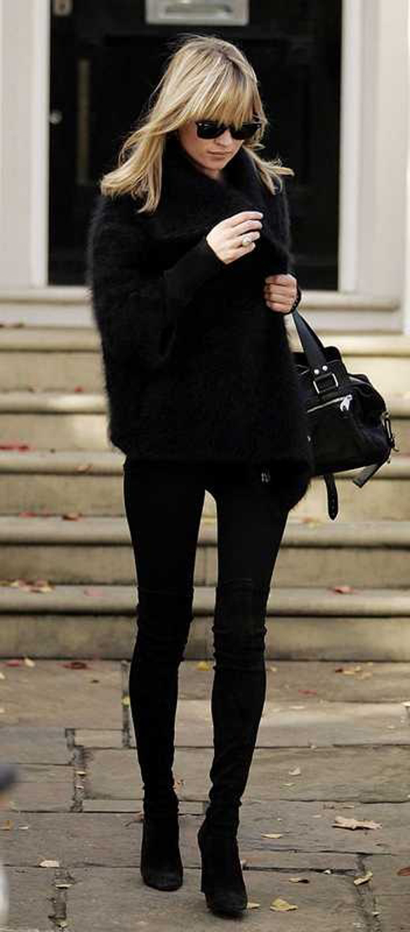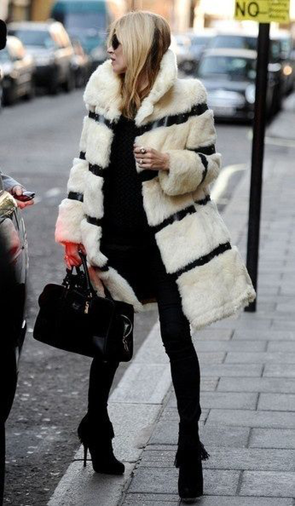 Her closet consists of jeans, fur coats, leather, animal print and black predominates in it. Sunglasses or handbags of all kinds she can’t miss… Kate says «I try and be a little bit chic. I wouldn’t wear sweatpants. I wouldn’t wear a twinset.» Her fashion tip is «I just throw on whatever I feel like wearing at the time, which tends to come from the palette of black, grey or red. If I’m having an off-day I’ll wear full black». Moss is a clear example that years and fashions come and go, but style always remains. What do you think?