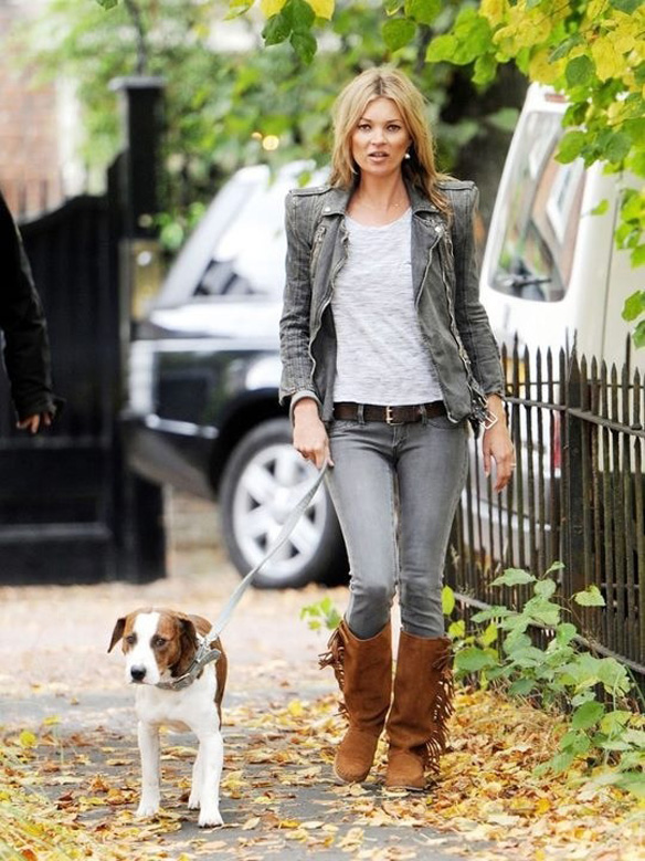 Su closet se compone de jeans, abrigos de pelo, cuero, animal print y en él predomina el negro. No faltan tampoco gafas de sol ni bolsos de todo tipo… Kate cuenta que «siempre intento ser un poco chic. Nunca llevaría pantalones de chándal. Nunca llevaría twinsets«. Su consejo sobre moda es «simplemente ponerme aquello que siento que debo llevar en ese momento, que suele provenir de la paleta del negro, gris o rojo. Si tengo un día libre me pondré de negro total». Moss es el claro ejemplo de que los años y las modas pasan, pero el estilo siempre permanece. ¿Qué os parece?