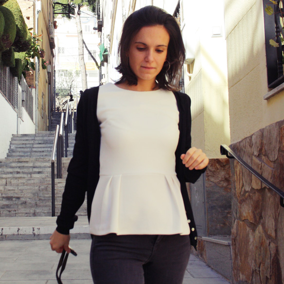 M’agrada el peplum que proposes i per anar a treballar crec que pot quedar elegant. El recomanaries amb faldilla o pantalons de traje? Estic cansada de portar camises sempre. Gracies