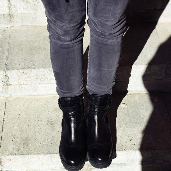 Today is a little bit different post. For those who generally like to dress in a more casual way, I propose a touch of creativity. Not beacuse it’s a special day, but because I would like to explain that only with one piece of clothing you can change the whole look. Typically, the green coat, which I’ve shown before because I love it, skinny jeans and booties which I’m used to wear with t-shirts that follow the line of the outfit, making it more sport. I’m comfortable and I feel very good with myself. But today I would like to introduce this white ¾ sleeve peplum top that in my opinion changes everything. It is still a casual look, that’s how I feel most comfortable, and after all this is the point, but with a chic touch. This is a top that I usually wore on special occasions, but as it has been demonstrated today, it can be a comfortable and stylish look at the same time.