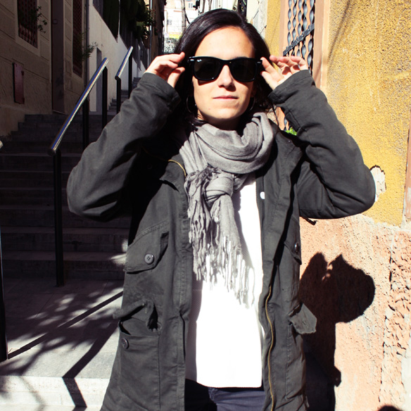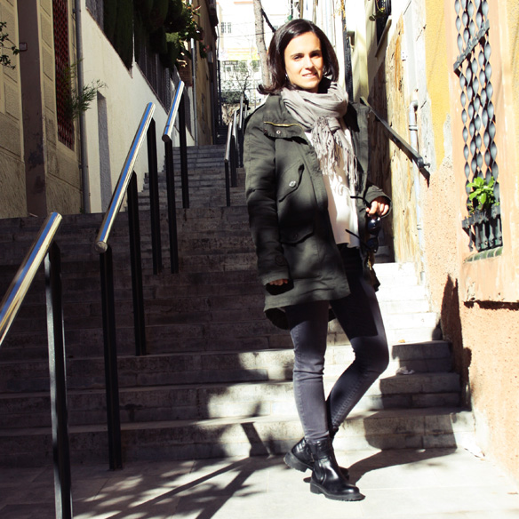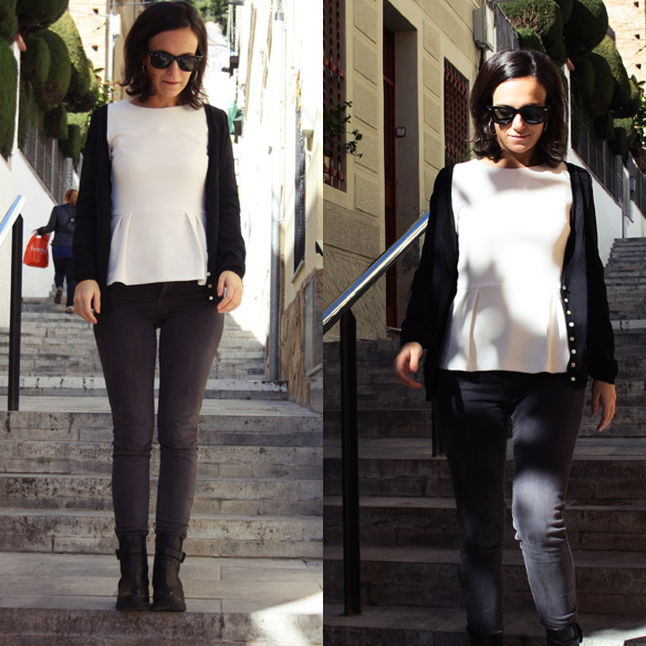 Hoy es un post un poco diferente. Para todas aquellas que generalmente les guste vestir más sport y casual, propongo un toque de creatividad. No es que sea un día especial, sino porque me gustaría explicar que sólo con una pieza de ropa puede cambiar todo el look. Normalmente, el abrigo verde, que ya os he presentado alguna otra vez porque me encanta, los pantalones pitillo y los botines los llevo con camisetas que siguen la línea del outfit, siendo más sport. Voy cómoda y me siento muy bien conmigo misma. Pero hoy me gustaría presentaros este top peplum de piqué blanco de manga ¾ que, en mi opinión, lo cambia todo. Sigue siendo un look sport, que es como más cómoda me siento, y al fin y al cabo es de eso de lo que se trata, pero con un toque chic. Este es un top que generalmente me ponía en ocasiones más especiales, pero como se ha podido demostrar hoy, puede ser un look cómodo y elegante a la vez.