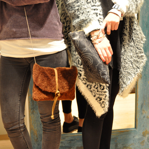 Dos de sus bolsos exclusivos, ¡nos encanta el de pelo! / Two of their exclusive handbags, we love the fur one!