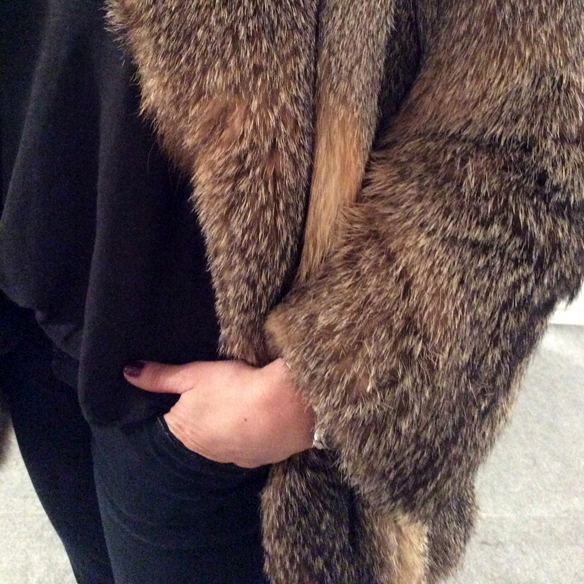 La semana pasada se realizó la 080 en Barcelona. Asistí a varios desfiles y este es uno de los outfits que elegí para la ocasión. Como algunos sabréis hacía un frío helador en el recinto y ya se sabe, ¡¡¡mujer prevenida vale por dos!!! Fiel a mi estilo no podía faltar mi sombrero black que aparte de calentarme la cabeza me encanta la combinación con mi abrigo de zorro que para mí es un must esta temporada, ya que los pelos son lo más trendy este año. Las dos piezas fueron perfectas para la ocasión y estuve de lo más calentita y cómoda. Lo quise combinar con un look basado en el negro y básico: una camiseta de American Vintage que nunca falla y un buen pitillo.