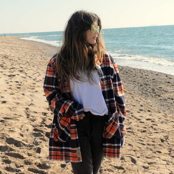 When most of the people around you have something as a hobby, it’s normal that you end up joining them, it’s my case with the surf, even being a beginner I have to say that every time I get in the water I enjoy it… The look hasn’t got any secrets, wetsuit and board in hand. Before and after comfortable clothing. I have chosen baggy pants, cotton t-shirt, plaid shirt and warm UGG boots. If you stay afterwards to do more plans as sunbathing, eating on the beach, etc. it is a perfect outfit.