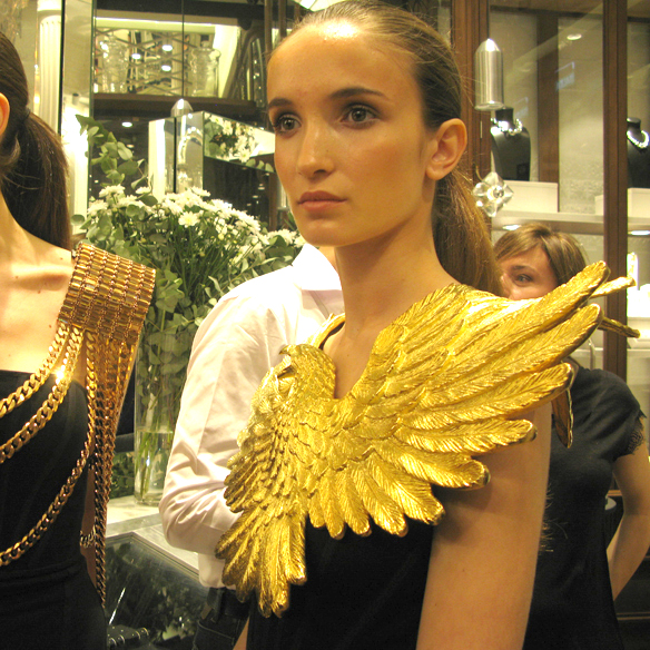 Some models dressed in femme fatale black covered with SPECTACULAR maxi necklaces (of the most daring collection of the firm) received you with open arms at a photocall where the flash had no respite. Juan Suarez, -Aristocrazy executive and product assitant to managing direction-, with his brother, Emiliano Suárez, -Group Suárez strategic marketing director-, posed smiling accompanied by Vanessa Lorenzo, Alaska, Boris Izaguirre, Verónica Blume, Alba Galocha, Carlos Latre and Laura Hayden, amongst others, who did not want to miss the kick off of which will probably be one of the most in stores in the city (interior design by Lázaro Rosa Violán).
