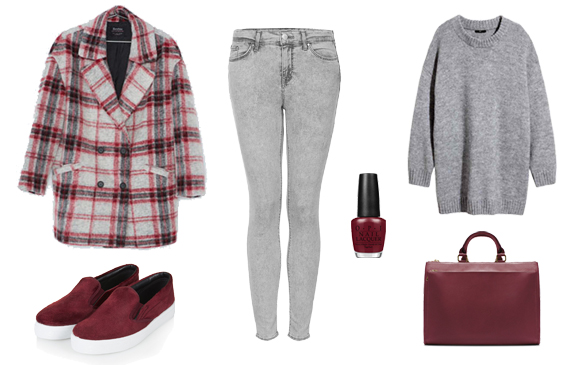 Para el sábado decidimos optar por un abrigo a cuadros en grises y granates, muy de estilo Marant pero más económico jiji. Lo combinamos con un total look en gris para que el abrigo sea el máximo protagonista: unos skinny jeans de tiro alto con un maxi jersey. Le damos toques de color con complementos granates, nos encanta este tándem de colores y además ambos son los protagonistas del abrigo. En granate las trainers y el working bag junto con la manicura. Dejemos que el abrigo se lleve todas las miradas y a disfrutar del sábado.