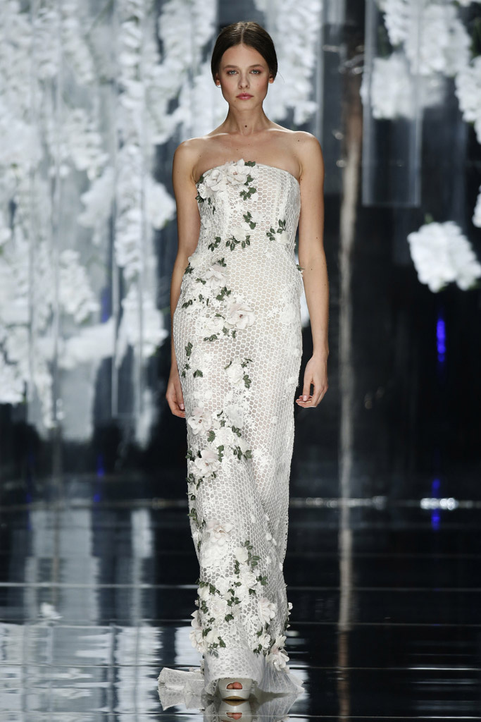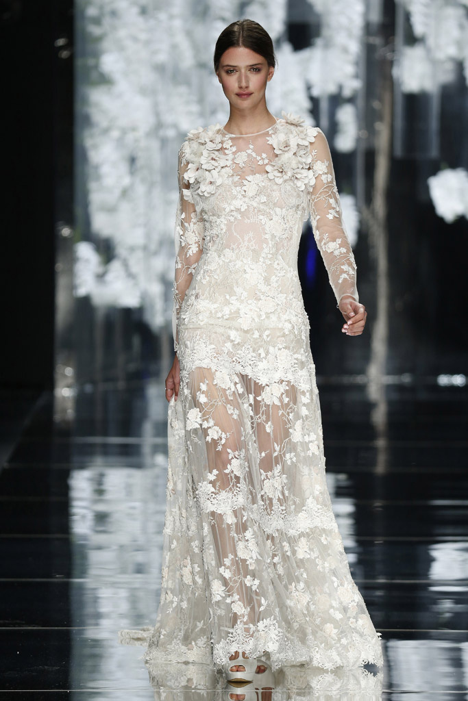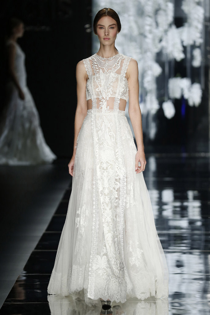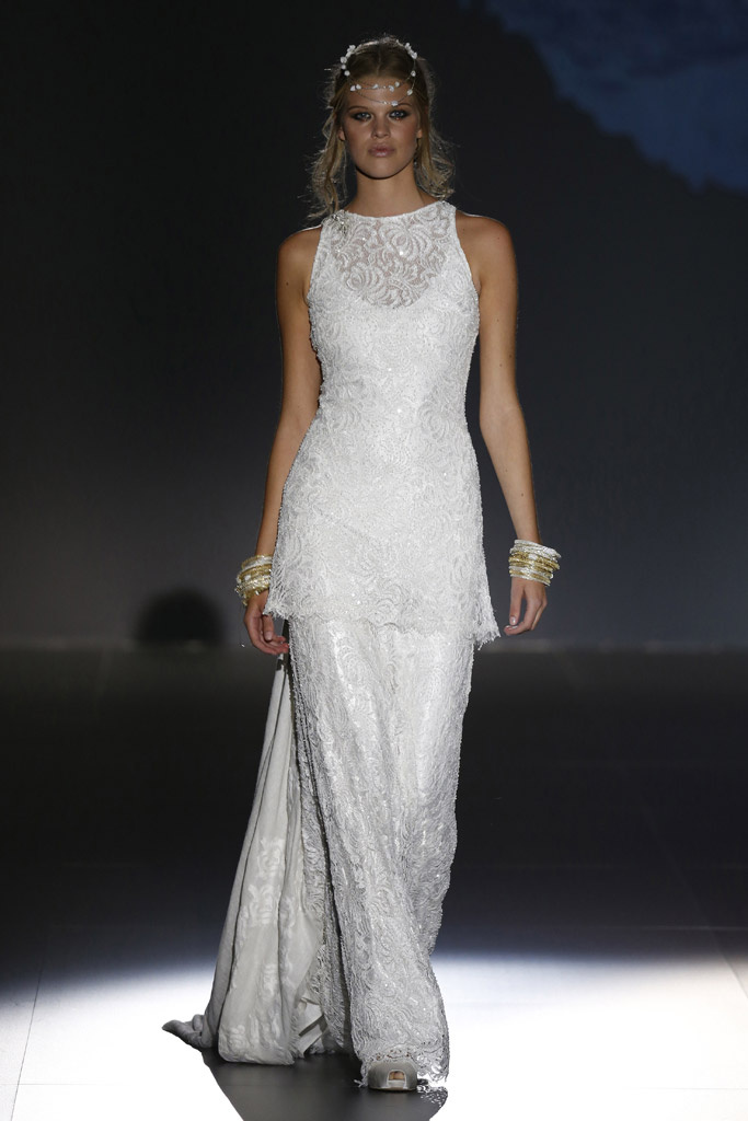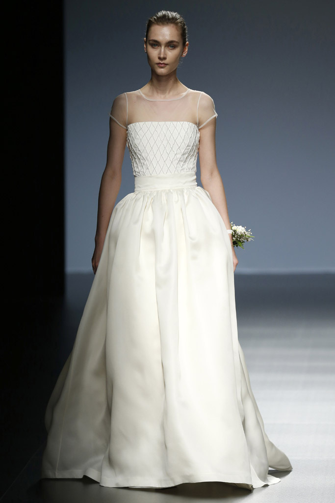 La firma catalana Rosa Clará, encargada como siempre de inaugurar la Pasarela Gaudí Novias, apostó para su colección 2016 por dos líneas muy diferenciadas. La primera, se inspira en las divas de los años 30 y 40, con tejidos que caen ligeros hasta los pies y vestidos que marcan la silueta femenina delicadamente. La segunda, apuesta por volver a la novia clásica, con vestidos que recuerdan a las crinolinas de estilo victoriano pero más modernos. Faldas con un volumen espectacular que se combinan con tops, camisas y cinturón. El dos piezas es una tendencia nupcial que viene pisando fuerte, y más después de que la it girl Olivia Palermo se casara en 2014 con un 2 piezas -de Carolina Herrera-.