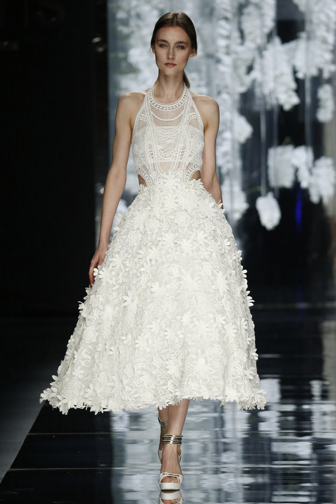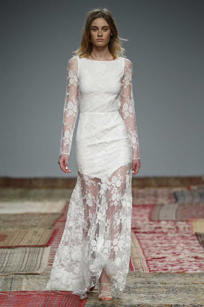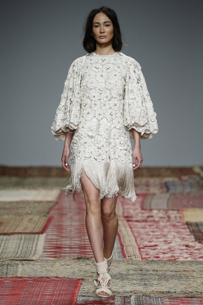 Nos gustó muchísimo la colección 2016 de la diseñadora Katharine Polk de la firma Houghton Bride, inspirada en la luz y en la estética de la boda bohemia. Fue increíble poder ver sobre la pasarela sus propuestas transgresoras que borran los límites entre la ropa ready to wear y la nupcial -o como ella misma lo define, el easy chic-. Conchas, piedras, abalorios cosidos a mano, capas fluidas… Si eres una novia poco convencional y de espíritu independiente y libre, ¡no te olvides de esta firma!