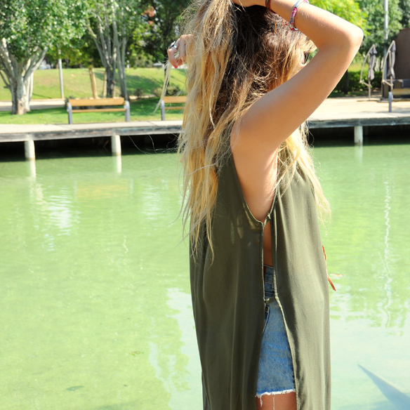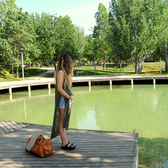 Suitcase in hand, for the first day I chose some basic shorts and one of the star items of this SS 15, a maxi shirt in khaki. For my things a fringed handbag and for my feet my inseparable summer ugly shoes.