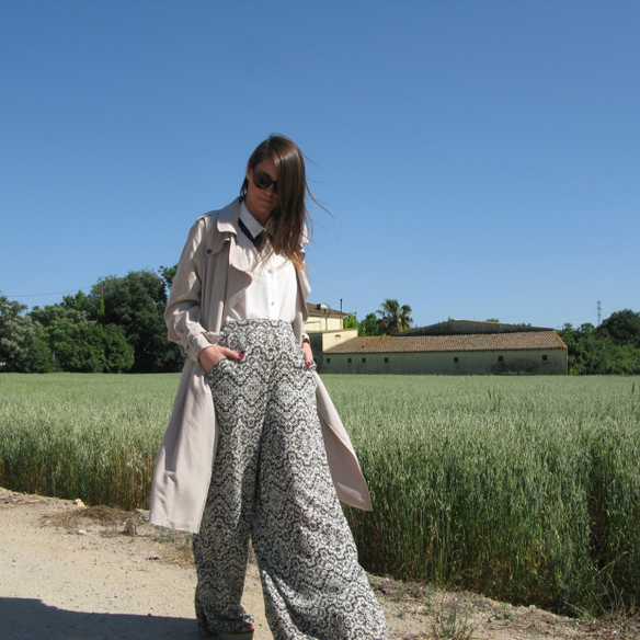 The breeze. Air that relaxes and renews. I must confess: I escaped for a walk through the countryside. I’m urbanite as could be, but sometimes it is so nice going away from the city! I felt free in these palazzo pants (which you have already seen here). Sometimes there are garments that although you wear them so many times they remain so special… And I have new trench, I love it! It is a perfect ally for this time of the year when it starts to heat -olé olé!- but you still need something when cooling.